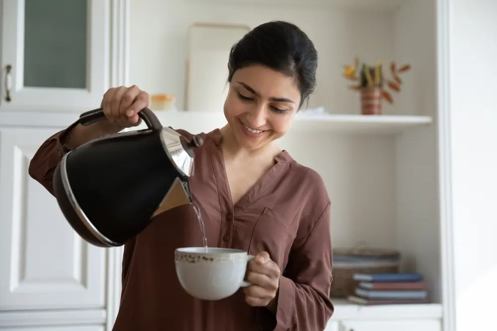امرأة تشرب ماء ساخن لحرق دهون البطن