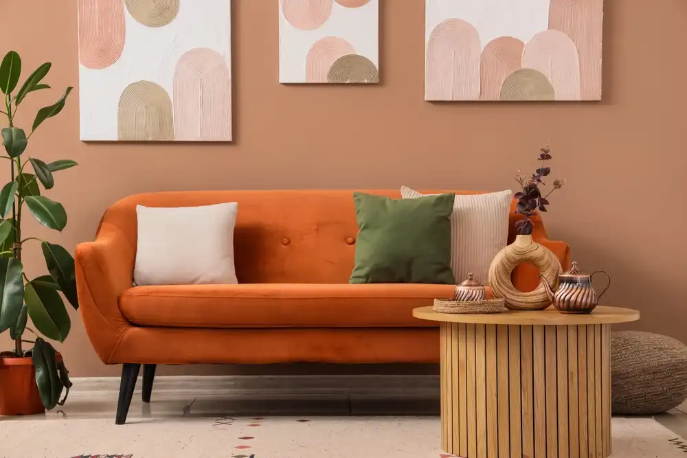 غرفة المعيشة هي القلب النابض للمنزل، ولذا فهي أفضل مكان لتجربة ألوان ديكور 2025. جربي الأرائك بدرجات الأحمر الترابي مع وسائد بالوردي الموحل، وأضيفي سجادة بألوان ترابية لتكمل المشهد.