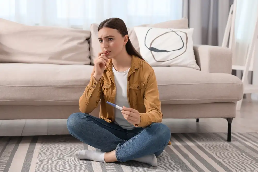 امرأة تفكر في علاقة حقنة اوزمبيك ومنع الحمل
